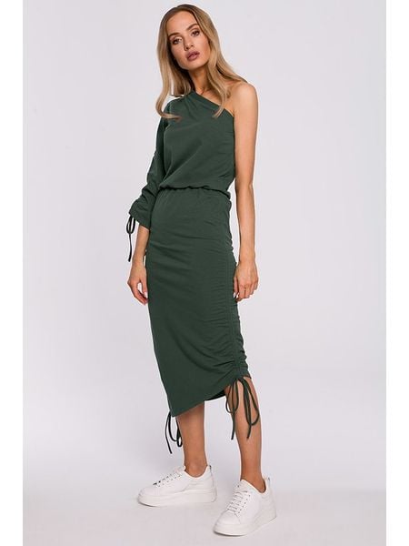– krój rękawów: na jedno ramię- detale: marszczenia- krój: wąski- look: jednokolorowy