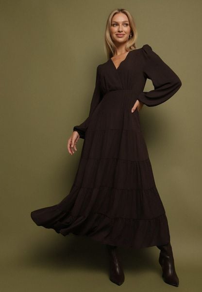 Brązowa Rozkloszowana Sukienka Vices z Kopertowym Dekoltem Reslosa