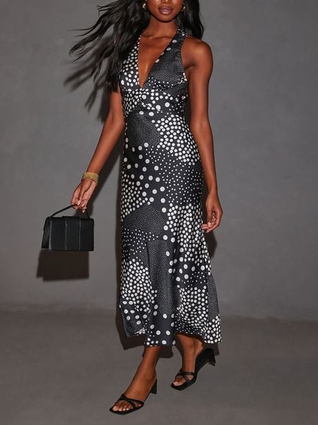 – dekolt: V- ramiączka: szerokie- krój: luźny- wzór: kropki