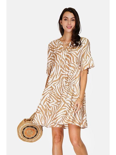 Le Jardin du Lin Sukienka w kolorze karmelowo-białym rozmiar: 40