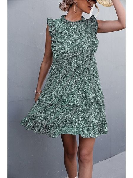 – kołnierz: stójka- zapięcie: guzik na plecach- krój rękawów: motylek- detale: falbany- krój: luźny- wzór: na całości