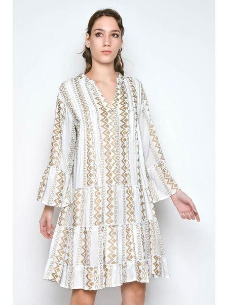 – czysta wiskoza- dekolt: z rozcięciem- detale: falbany- krój: luźny- wzór: na całości