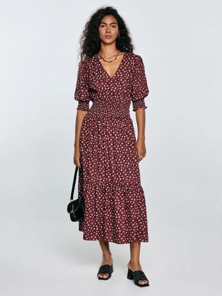 Sukienka damska midi z wiskozy z motywem kwiatowym bordowa Sheri 604