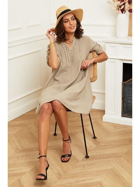 sukienki bez kołnierzyka brązowe sukienki odzież, obuwie, dodatki damskie limango.pl sukienki le monde du lin sukienki midi sukienki ze stójką odzież, obuwie, dodatki damskie le monde du lin sukienki bez rękawów sukienki ze sklepu limango.pl szare sukienki