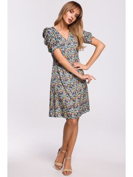 – dekolt: V- rękaw: bufiasty- krój: rozkloszowany- wzór: kwiatowy