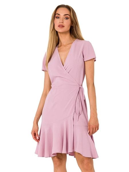– dekolt: V- w talii wiązanie: tak – dolny brzeg: z falbankami – krój: taliowany – look: jednokolorowy