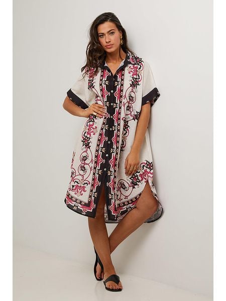 Le Monde du Lin Sukienka w kolorze kremowo-granatowo-czerwonym rozmiar: 34/36
