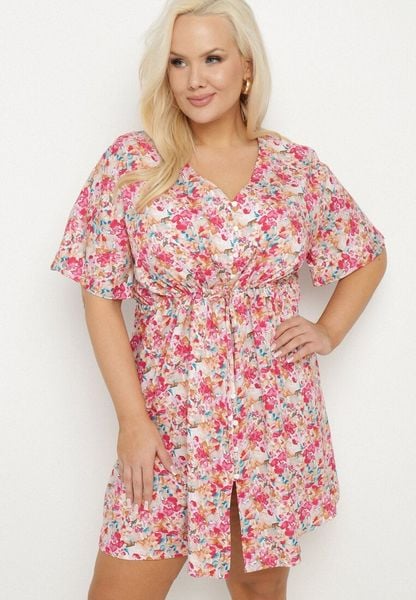 Fuksjowa Koszulowa Sukienka z Wiskozą Ozdobiona Wiązaniem Edirilira
