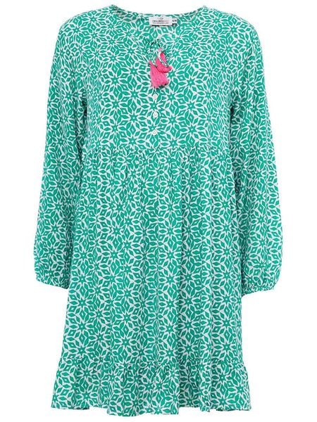 – czysta wiskoza- dekolt: V- zapięcie: wiązane tasiemki- rękaw: bufiasty- detale: chwost- krój: luźny- wzór: na całości