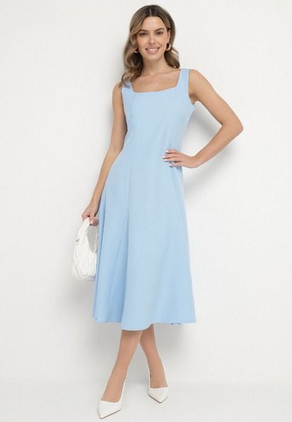 Niebieska Klasyczna Sukienka o Rozkloszowanym Kroju Delure
