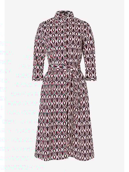 – z dodatkiem bawełny- kołnierz: kent- zapięcie: listwa guzikowa- zakończenie rękawa: podwijane- zdejmowany pasek: tkanina- krój: litera A- dolny brzeg: z falbankami- wzór: na całości