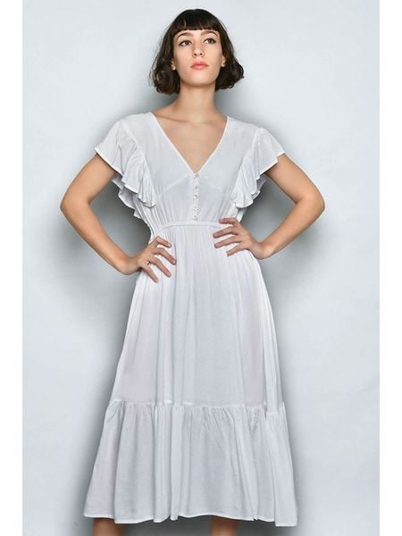sukienki bez kołnierzyka sukienki midi odzież, obuwie, dodatki damskie limango.pl sukienki bez ramiączek białe sukienki sukienki bez rękawów sukienki ze sklepu limango.pl odzież, obuwie, dodatki damskie h.h.g. sukienki z falbankami sukienki h.h.g.