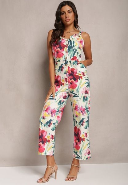 Kombinezon Beyla wykonany w 100% z oddychającej bawełny. Pokryty printem w duże kwiaty. Posiada wsuwane kieszenie oraz zapinanie na guziczki.