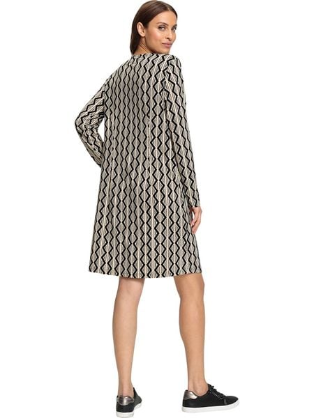 – z dodatkiem poliestru pochodzącego z recyklingu- dekolt: V- detale: ozdobna zakładka- krój: rozkloszowany- wzór: na całości