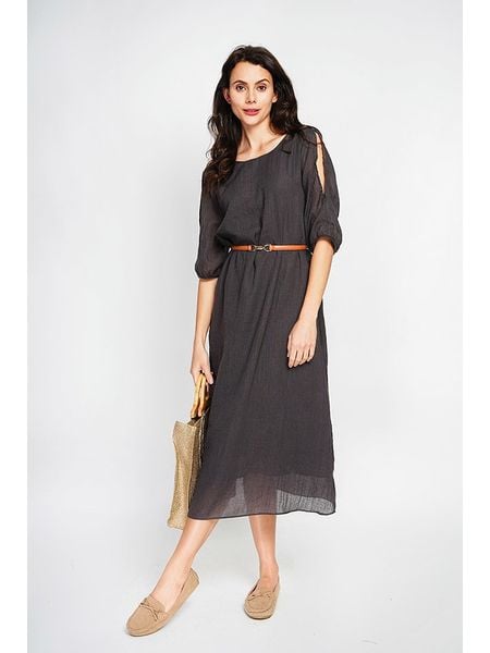 ASSUILI Lniana sukienka w kolorze czarnym rozmiar: 40