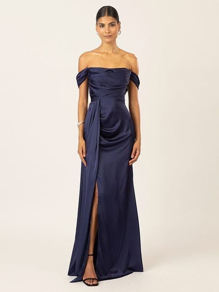 – dekolt: Carmen- zapięcie: wiązanie na plecach- dolny brzeg: z rozcięciem- detale: plisy- krój: taliowany- look: jednokolorowy, imitacja satyny