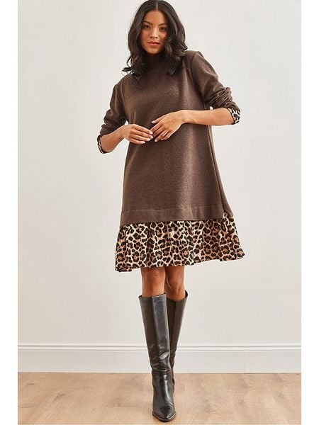 – z dodatkiem bawełny- kołnierz: stójka- dolny brzeg: z falbankami- krój: prosty- wzór: panterka
