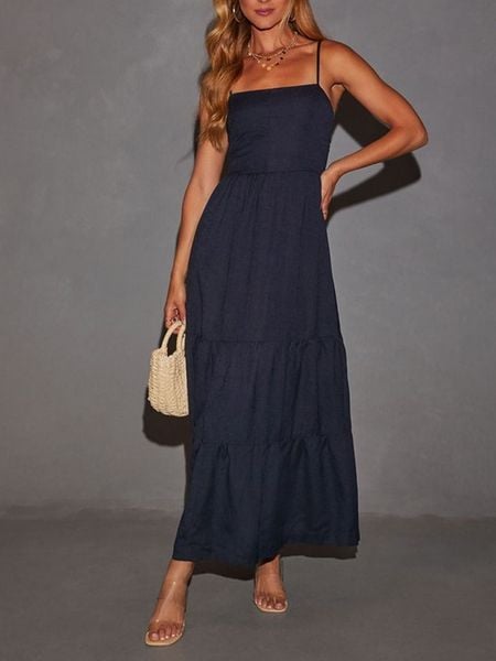 – dekolt: karo- ramiączka: wąskie- zapięcie: wiązanie na plecach- krój: luźny- look: jednokolorowy