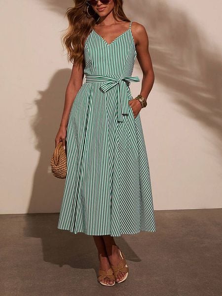 – ramiączka: regulowane- dekolt: V- zdejmowany pasek: tkanina- kieszenie: wpuszczane- krój: litera A- wzór: paskiUwaga: Przy wyborze właściwego wariantu zaleca się korzystanie z tabeli rozmiarów.