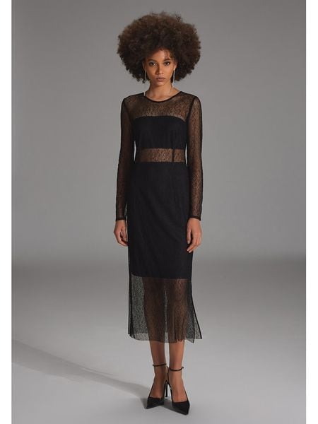 – dekolt: okrągły- zapięcie: suwak na plecach- dolny brzeg: z rozcięciem- krój: wąski- look: jednokolorowy- wykończenie: delikatnie prześwitujące