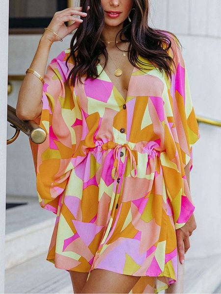 – dekolt: V- zapięcie: listwa guzikowa- krój rękawów: nietoperz- talia: ściągacz tunelowy- krój: luźny- wzór: na całościUwaga: Przy wyborze właściwego wariantu zaleca się korzystanie z tabeli rozmiarów.