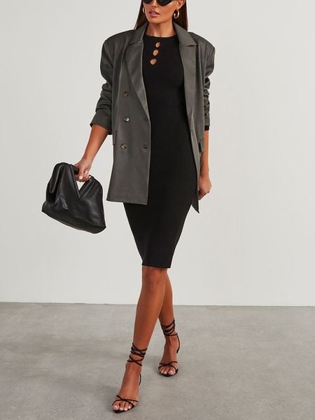 – dekolt: okrągły- detale: wycięcia- krój: wąski- look: jednokolorowy