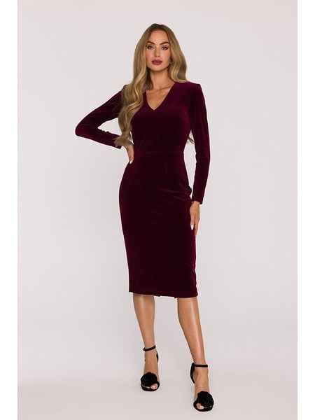 – z dodatkiem bawełny- dekolt: V- zapięcie: suwak na plecach- krój: wąski- look: jednokolorowy