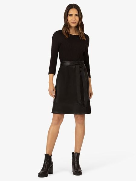 – kołnierz: stójka- zapięcie: suwak na plecach- zdejmowany pasek: skóra syntetyczna- detale: wstawki ze skóry syntetycznej- krój: litera A- look: jednokolorowy