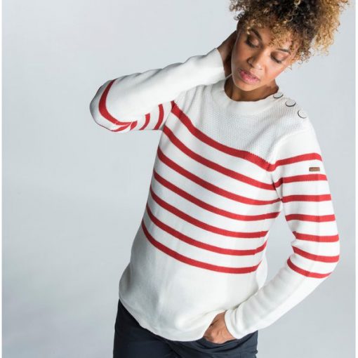 Ten marynarski sweter, w 100% bawełniany zapewnia miękkość i ciepło, w kultowym, marynarskim stylu. Zapięcie na guziki przy szyi ułatwia jego założenie. Gęsta dzianina pod pachami, przewiewny na wierzchu ramion. Chroni od 10 do 13°C. Dzianina w 100% bawełniana, miękka w kontakcie ze skórą. Sweter waży 450 g w rozmiarze L.