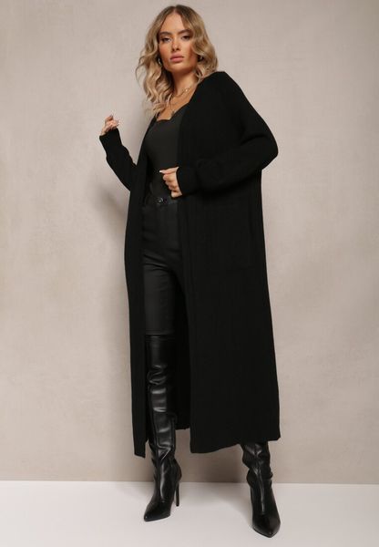 Czarny Długi Kardigan Niezapinany z Kieszeniami Richildi