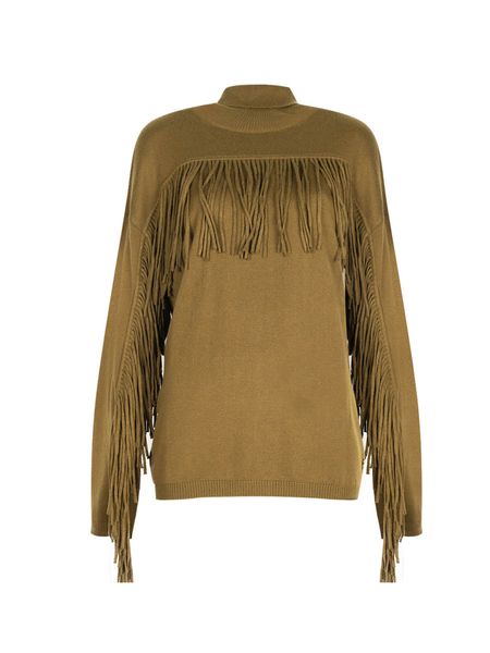 Prosty fasonGolfZ długim rękawemDekolt, rękawy oraz dół zakończone ściągaczemPrzód oraz rękawy ozdobione frędzlamiZ przodu firmowy detalWykonana z wysokiej jakości tkaniny z dodatkiem wełny