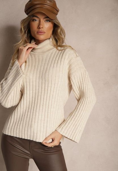 Jasnobeżowy Klasyczny Golf z Prążkowanym Tłoczeniem Etteira