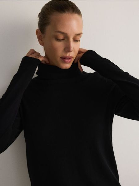 Sweter o dopasowanym kroju z golfem, wykonany z dzianiny z wiskozą.