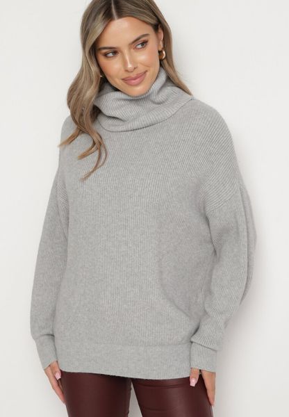 Szary Golf o Klasycznym Kroju z Kaszmirem Azifra
