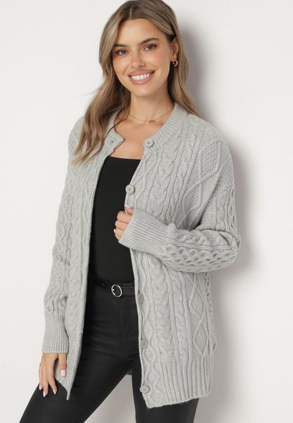 Szary Rozpinany Kardigan Ozdobiony Tłoczeniem Melorisse