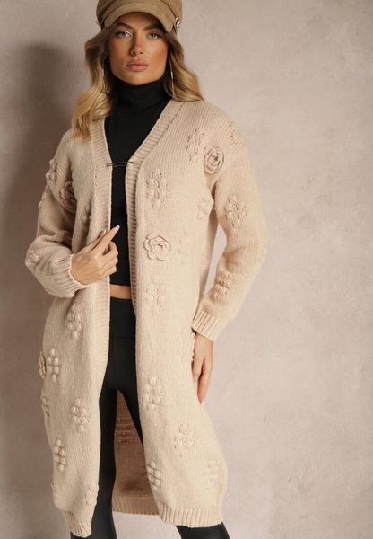 Brązowy Kardigan z Wełną i Wiskozą Ozdobiony Tłoczeniem Besisia