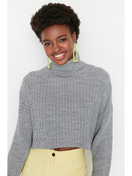 – kołnierz: golf- krój: cropped- look: jednokolorowy, prążkowany