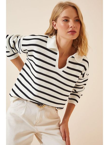 – kołnierz: kent- dekolt: V- krój: luźny- wzór: paski