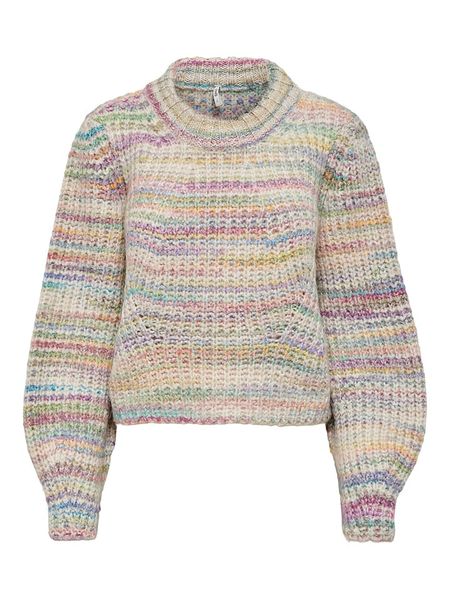 – dekolt: okrągły- rękaw: bufiasty- wzór splotu: luźny- krój: luźny- wzór: przejście kolorów
