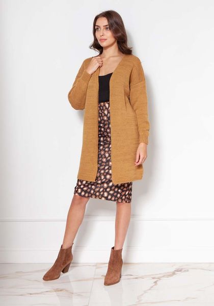 Klasyczny Dłuższy Kardigan bez Zapięcia – Musztardowy