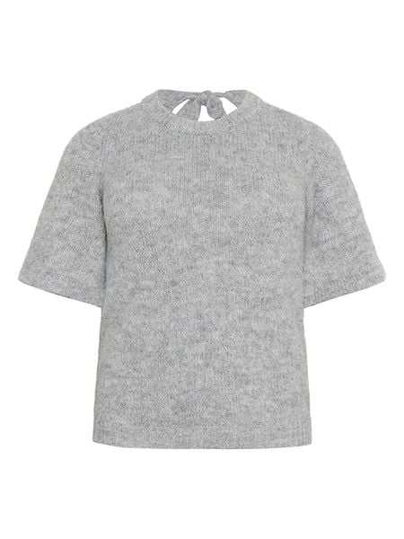 – z dodatkiem wełny- z dodatkiem poliestru pochodzącego z recyklingu- dekolt: okrągły- zapięcie: wiązanie na plecach- długość rękawa: półdługi- krój: prosty- wzór: melanżowy