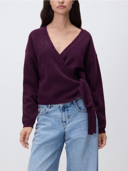 Sweter z wiązaniem – ciemnofioletowy
