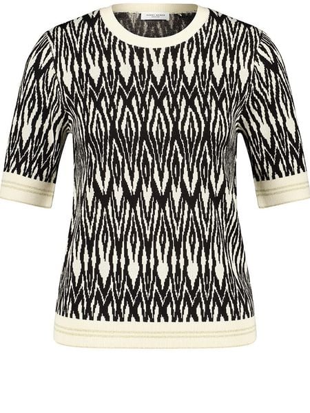 – dekolt: okrągły- ściągacz: dekolt, zakończenia rękawów, dolny brzeg- krój: wąski- wzór: na całości