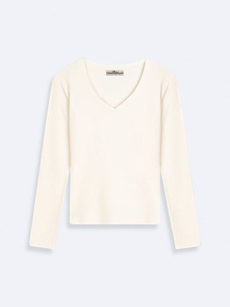 – dekolt: V- krój: prosty- look: jednokolorowy, prążkowany