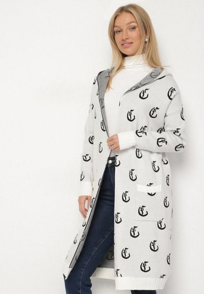 Jasnoszary Kardigan z Kapturem w Geometryczny Wzór Ralisa