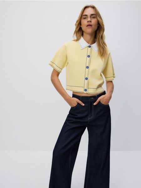 Kardigan z ozdobnym kołnierzem – jasnożółty
