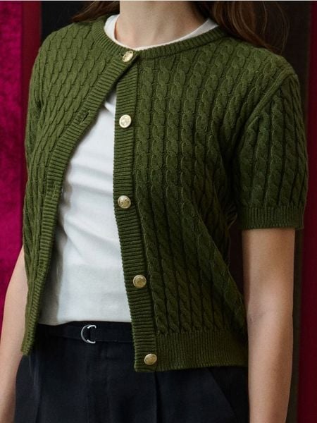 Kardigan z krótkim rękawem i ozdobnymi guzikami – zielony