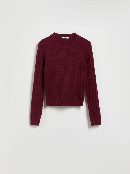 Sweter z ozdobnym splotem – bordowy