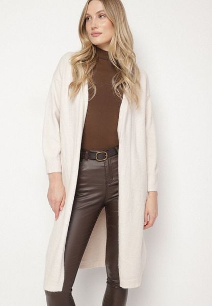 Biały Klasyczny Długi Kardigan Niezapinany z Wełną Zozila