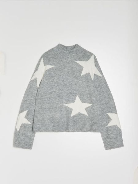 Sinsay – Sweter ze wzorem w gwiazdy – szary –